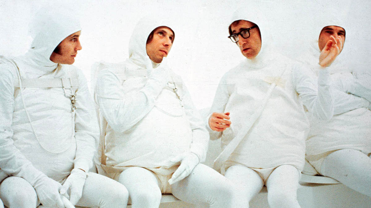 Первая история рассказывает о королевском шуте в исполнении самого Аллена. Отсылки к Гамлету и прочие поясы верности. Второй сюжет – про влюбившегося в овцу (животное такое) доктора, сыгранного Джином Уайлдером. Затем – пародия на итальянское кино, и снова Аллен, играющий мужа, у которого жена с прибабахом. Четвертая история о мужике-трансвестите, попавшем в нелепую ситуацию. Пятая – стилизованное под ч/б-телеизображение игровое шоу типа «сто к одному», где участники угадывают, какой секс-перверсией обладает приглашенный гость. Шестая – пародия на фильмы про Франкенштейна и хоррор «Капля», только вместо инопланетной биомассы тут гиганская силиконовая женская грудь (1 шт.). Седьмой скетч самый экстравагантный и забавный. Нам показывают коллектив работников мужского тела: это диспетчеры, сидящие в мозге, и рабочие, суетящиеся в желудке, а также ответственные за половую эрекцию (суровые такие мужики, крутящий гигантскую лебедку). Аллен играет... сперматозоид.