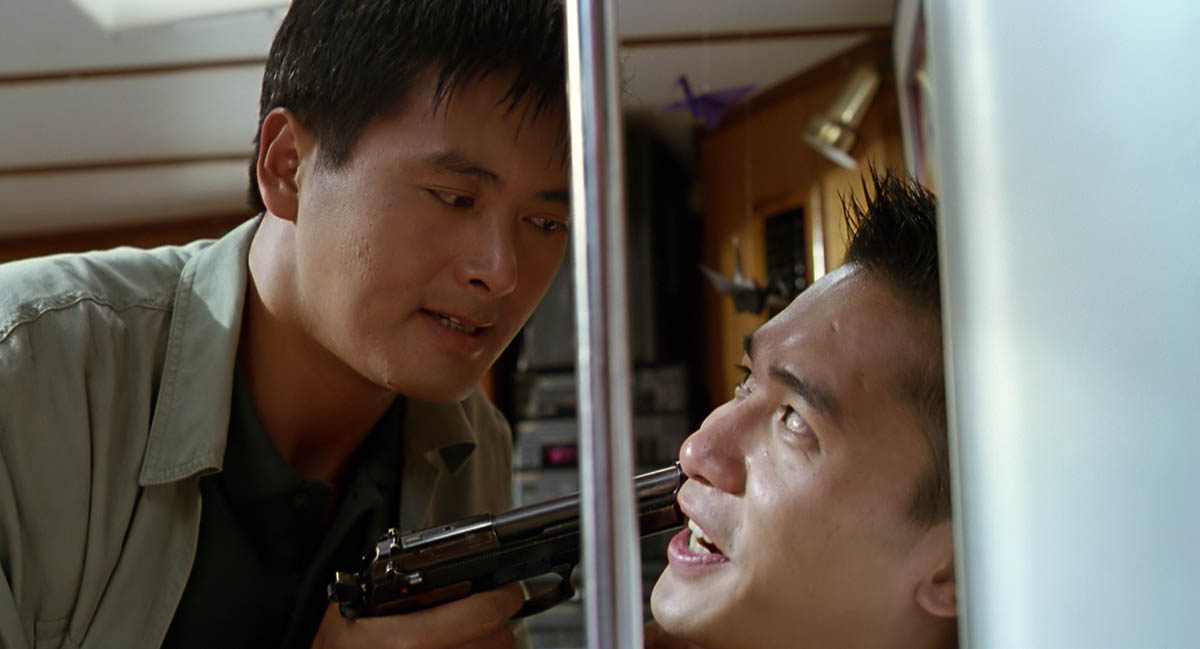 Согласно лихо закрученному сюжету, который, впрочем, в последней трети фильма распрямляется совершенно, вся полиция британской островной колонии очень болезненно реагирует на торговлю оружием; их лучший специалист по прозвищу Текила в свободное от поигрывания на кларнете и общения с хозяином джаз-бара мистером Ву время проводит выходящие из под контроля операции по неудачному задержанию преступных элементов. (И, кажется, вся бойня-разминка в чайном домике, призванная разжечь зрительский аппетит, задумана была лишь для кадра, когда испачканное мукой лицо Текилы обагряется кровью невезучего бандита. Таков уж этот мистер Ву. Эстет.) Чуть позже в пространство лихо закрученного сюжета на красном спорткаре, с прической «ежик» и повадками Леона выруливает как бы антагонист Тони. Он что-то там интригует в триадных кулуарах, перебегая от одного оружейного барона к другому, ведет себя по-бандитски, и вообще просится в кинораздел обаятельных мерзавцев. Не будучи таким уж однозначным, вскоре Тони узнает о существовании соперника. Несмешно шутит по поводу его прозвища, но потом оба начинают находить в компании друг друга некое очарование. Что-то сродни первому знакомству подростка с компьютерным 3D-шутером.